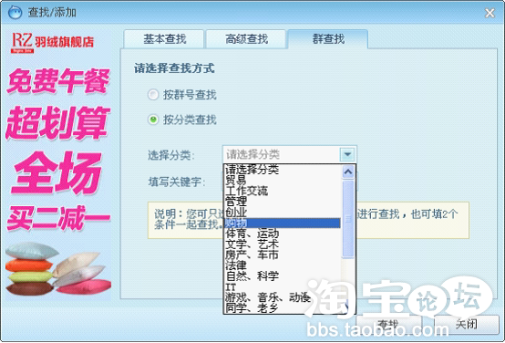 首先,进入旺旺的群查找界面,选择分类中的“购物” 内容来自