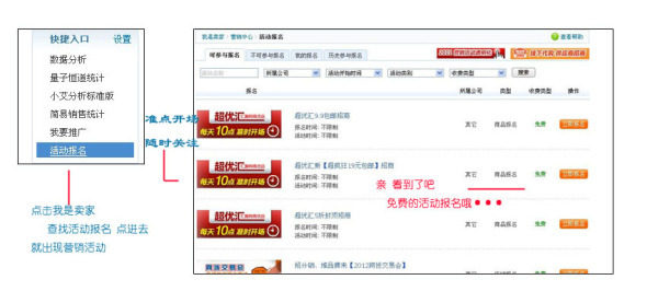 还有很多免费的活动,我这边就一一列举了,亲们如果想得到更大的收获,可以到“我是卖家〉营销中心”查找,选择适合自己的,今天就说到这里,谢谢各位的捧场!!!! 本文来自菁菁网
