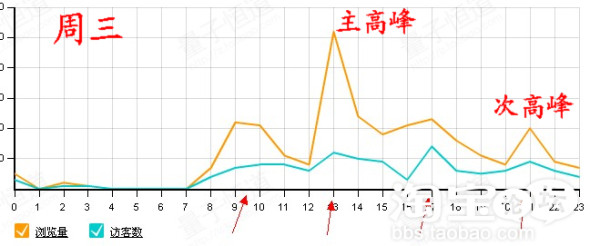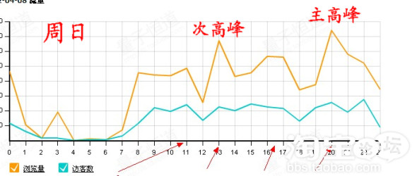 解决方案:进入量子统计,在“按小时流量分析”中,选择连续一周的按小时流量分析图,可以看到从周一到周日每一天的主流量高峰和次流量高峰的时间段。(这里要注意的是,周一到周日,主高峰和次高峰的分布是有区别的,这与不同工作日和休息日,上班族的状态、作息时间、上网时间乃至心情都有关系) taoqao.com
