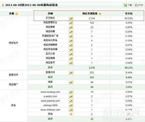 活动是8号早上10点开始,其实7号的时候就可以开始做点小文章了,因为官网首页有预告嘛!通过量子统计观察,7号的时候就陆续有通过天天特价官网过来的流量了,所以这天也尽量争取有多的关联销售。